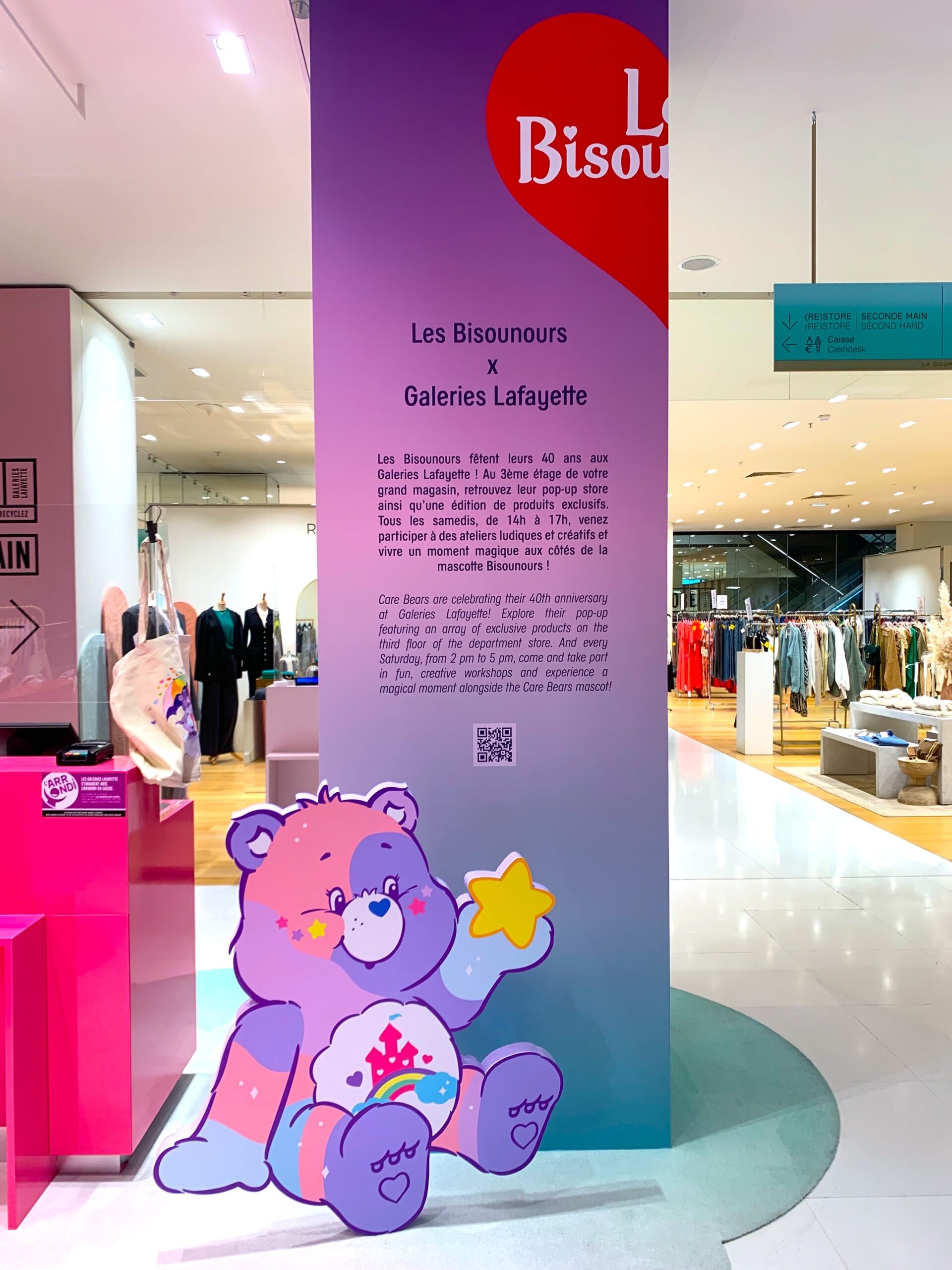 J’ai accompagné la marque Les Bisounours pour leur POP-UP aux Galeries Lafayette en assurant la communication de l’événement et la mise en avant sur les réseaux sociaux. J’ai également réalisé les photographies des peluches et participé à l’organisation des ateliers créatifs, pour offrir au public une expérience immersive et joyeuse autour de l’univers des Bisounours.